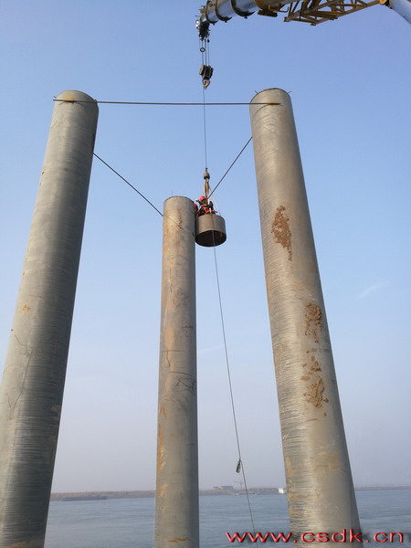 在預(yù)報(bào)最冷的冬天,湖南航務(wù)公司給了我們長沙大秦一個(gè)深情的擁抱,讓我們參與在岳陽長江邊安裝浮動船塢定位樁。